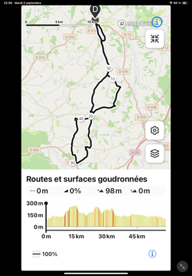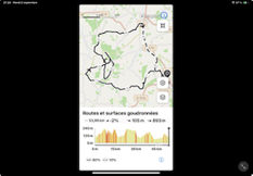 Nous sommes rentrés déçus d’avoir vu tant de paysages vallonés magnifiques mais fourbus : 50 kilomètres et 757 mètres de dénivelé, nous avons une pensée pour les cyclistes non assistés électriquement.