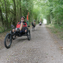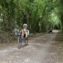 Après concertation et au vu d’une météo incertaine nous rebroussons chemin pour le camping. Mais là, la voie verte monte, ( c’est bizarre à l’aller cela descendait ? )mais il fait sec.