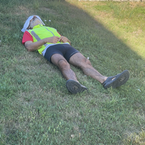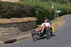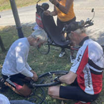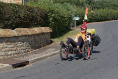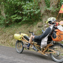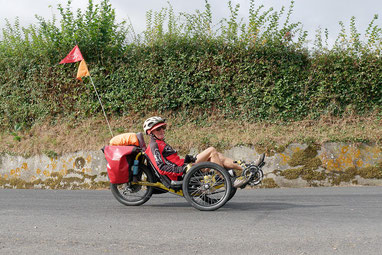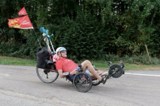 Respect pour Serge et son T-shirt « Ne sous estimez pas un vieux qui roule à vélo couché ».