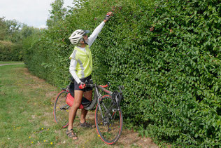 Les petites routes sont plus que calmes, peu de voitures, de l’ombre régulièrement. Dame Nature est même avec nous et nous offre des petits bonheurs :des mûres en quantité dans les haies luxuriantes.