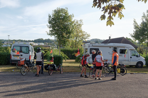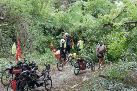 Le ciel est beau mais la route sorti du camping monte toujours aussi fort et mon Allewender ne veux toujours pas monter, je suis encore le dernier qu’il faut attendre … Alain doit même me pousser un peu. Ce pays est magnifique mais très vallonné … à réserver aux jambes entraînée ou aux moteurs, mon vélomobile n’est pas à son aise.