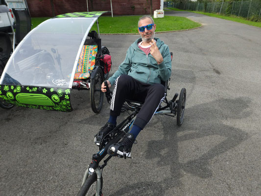 Sylvie, Daniel et Jean Marc avaient donc préparé les vélos pour 6 patients 2 kinés et un médecin et le vélo porteur de l'Autruche au fil de soi.