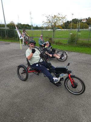 La clinique Mariena avait sollicité les adhérents de l'AFV pour un après-midi de découverte et d'initiation aux vélos à bras et aux tricycles couchés.